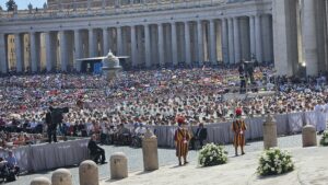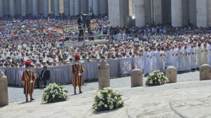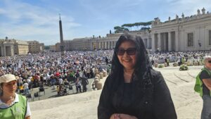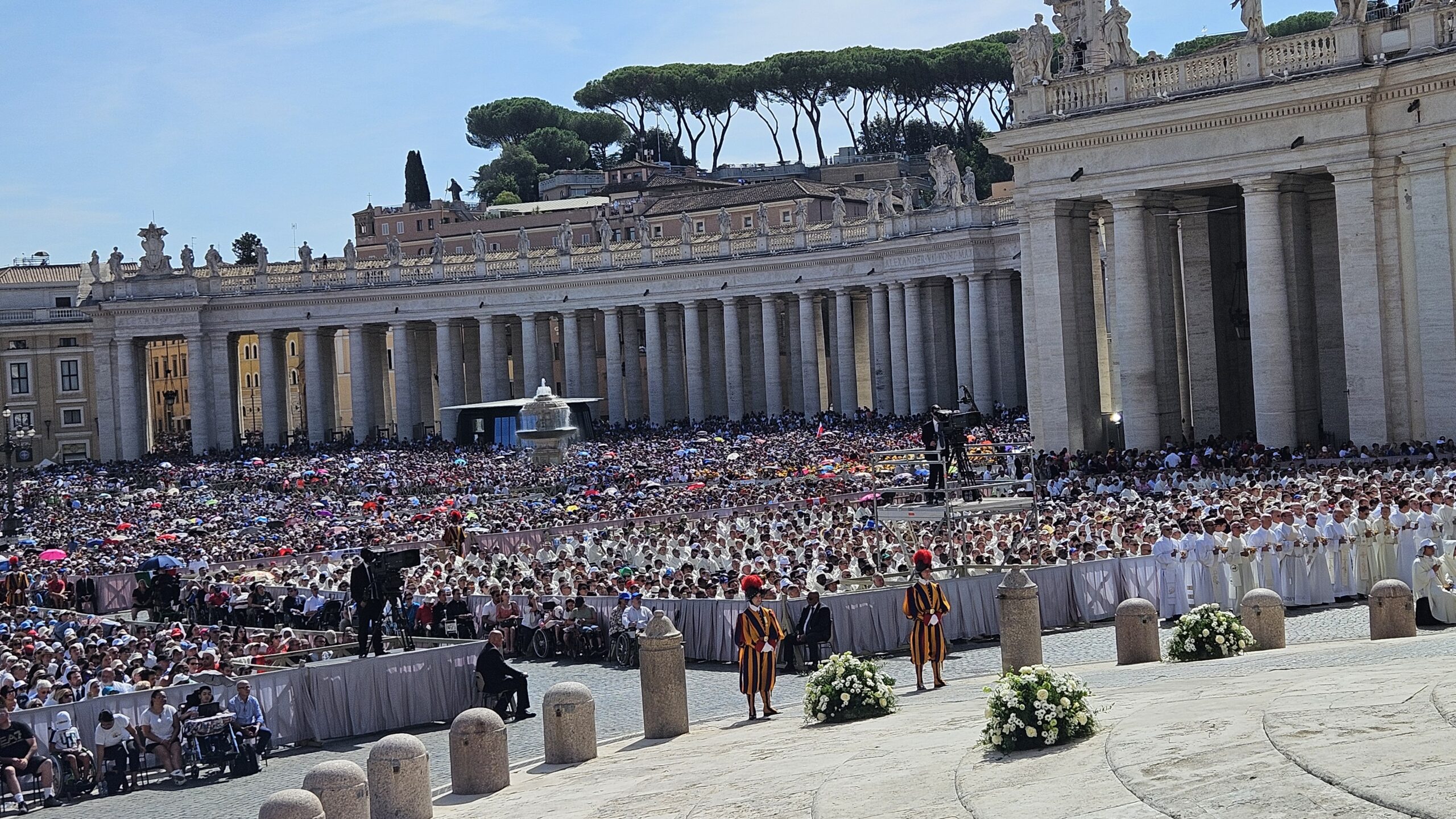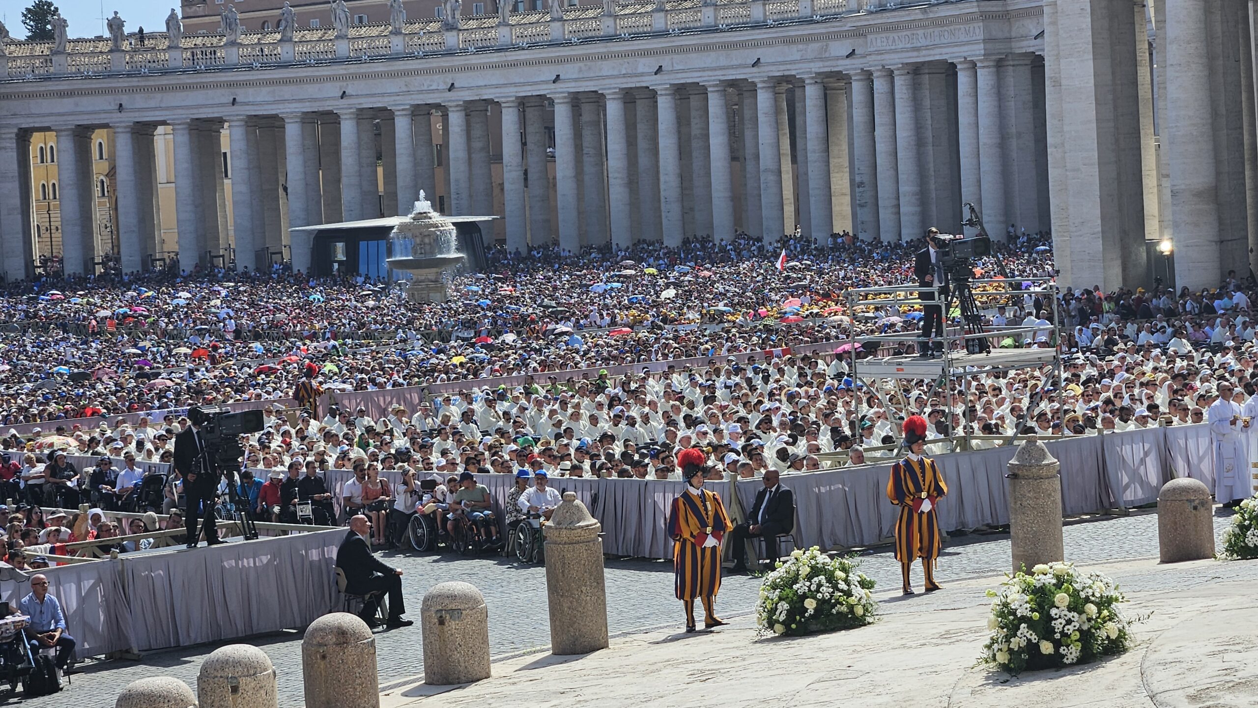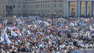 Hari baru pukul 09.15, tapi panas Matahari sudah terasa di Lapangan Santo Petrus, Vatikan. Ribuan orang, diperkirakan 70.000 umat, terutama anak-anak muda, sudah sejak pagi berada di lapangan yang sarat sejarah itu. Sejarah Gereja Katolik. Sejarah Kekatolikan. Bendera berbagai negara, dikibar-kibarkan di berbagai tempat. Beragam spanduk dan poster dengan foto wajah Acutis, dibentangkan. Terdengar pula lantunan lagu, beragam bahasa.